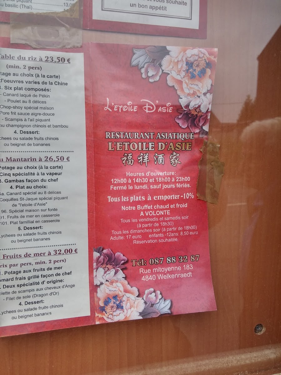 The menu at L' Etoile D'asie offers a delightful blend of Asian flavors, showcasing the rich and diverse tastes of the region. One of the standout dishes is the Chinesische Reistafel, a truly indulgent experience for those seeking a variety of flavors in one meal. This dish features a selection of traditional Chinese dishes, served with fragrant rice, offering an excellent balance of textures and spices. For those craving a more hearty meal, the menu also includes flavorful options like the popular Curry Thaï, a spicy and aromatic Thai curry with a choice of meat or vegetables, perfect for spice lovers. The Nasi Goreng is another crowd favorite, with its savory fried rice accompanied by a blend of fresh ingredients that bring an authentic taste of Indonesia to the table. Each dish is expertly crafted, with attention to detail in flavor and presentation, ensuring a satisfying dining experience. Whether you’re in the mood for something spicy, savory, or sweet, L' Etoile D'asie’s menu caters to a wide range of tastes and preferences, making it a go-to spot for lovers of Asian cuisine in the area.